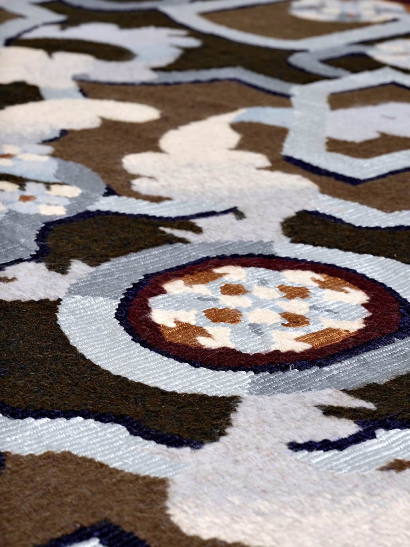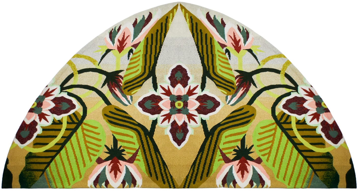 A constant in decorative arts, the art of weaving rugs and tapestries presents a natural canvas for a rich visual vocabulary, and as such is at the heart of Pierre Marie Studio’s endeavor. Pierre Marie’s first tapestry, “Ras El Hanout”, was handwoven in Aubusson by the historic Manufacture Robert Four. The piece was presented in 2018, and we have since been able to bring such ornamental handwoven pieces into many interiors.